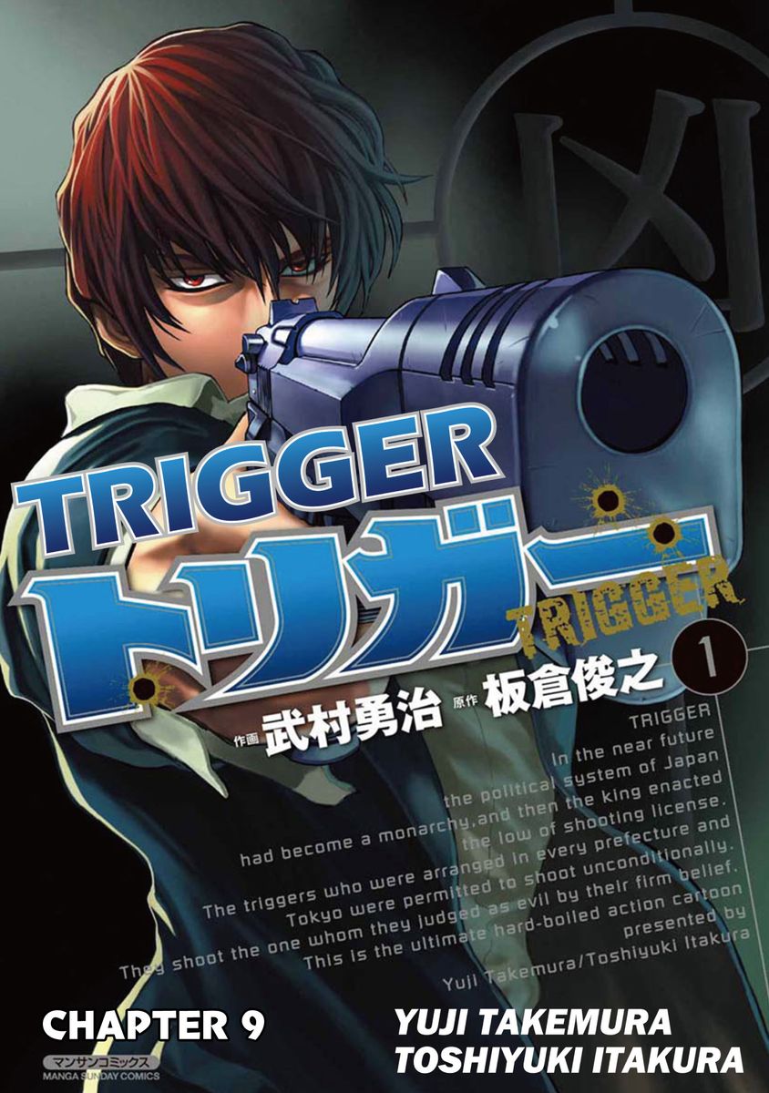 The action novel written by the popular comedian, Impulse's Toshiyuki Itakura has been made into a comic! In the near future a new law in Japan is enacted, the ”Shoot to kill” law. So called Triggers are selected, one in each prefecture. They are allowed to eradicate evil as they see fit. This edition has the Tokyo, Chiba and the Shizuoka trigger!