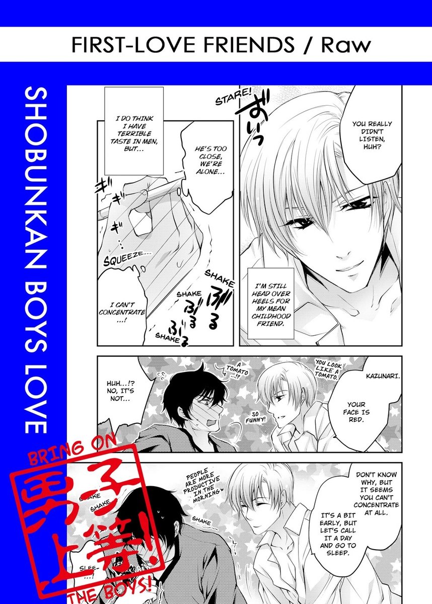 Kazunari can't go on vacation with his family because he has makeup classes. His childhood friend Shinobu stays over at his house to help him study! In truth, he is Kazunari's unrequited first love, and now memories of the past when they were so close are coming back to haunt him...