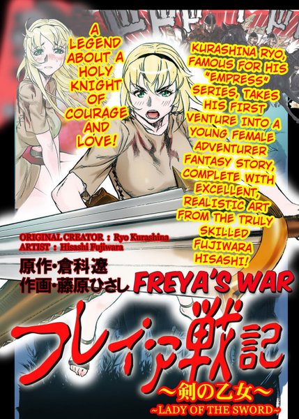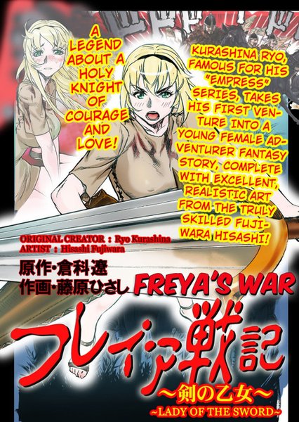 A holy sword to vanquish evil! A tale of a holy knight of love and courage! A realistic heroic fantasy created by a duo of truly talented creators! Long after the age of the gods, war rages. A graceful young lady named Freya stands up to resist the invasion of a mad emperor... for she is a descendant in the line of a legendary warrior! Long ago, during the age of the gods, the evil god Loki tried to cover the world in darkness. The overgod Odin gave a single warrior a holy sword and commanded him to vanquish Loki. Bravely, the warrior battled Loki by himself and defeated him with the help of the holy sword. But before he died, Loki left some creepy last words behind. "After thousands of years, I will be reborn!"