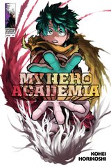 The plan to engage the villains on the heroes' terms has mostly succeeded. Now in different locations around Japan, the heroes and U.A. students take on the villains in all-out battles! First, Todoroki squares off against Dabi with terrifying intensity. Elsewhere, Endeavor and Hawks hope to turn the tables on All For One, but the villain mastermind has one last trick up his sleeve. Finally, it's Tomura's new and improved body versus the crew at the airborne U.A., where the youngest heroes have critical roles to play!...Rated:T