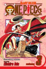 As a kid, Monkey D. Luffy vowed to become King of the Pirates and find the legendary treasure called the "One Piece." The enchanted Gum-Gum Fruit has given Luffy the power to stretch like rubber--and his new crewmate, the infamous pirate hunter Roronoa Zolo, strikes fear into the hearts of other buccaneers! But what chance does one rubber guy stand against Nami, a thief so tough she specializes in robbing pirates...or Captain Buggy, a fiendish pirate lord whose weird, clownish appearance conceals even weirder powers? It's pirate vs. pirate in the second swashbuckling volume of One Piece!...Rated:T